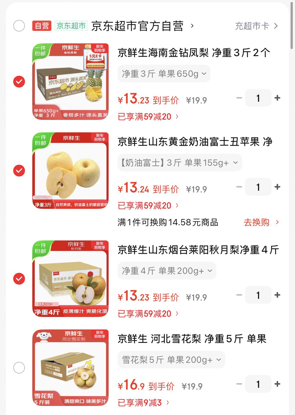 自营水果任选3件折13.3/件