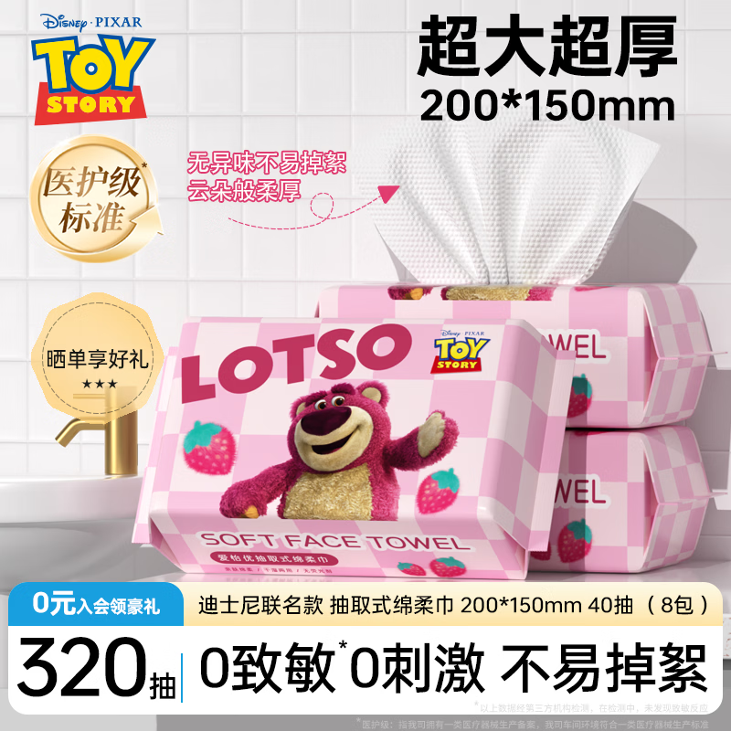 爱怡优×草莓熊联名 洗脸巾 40抽*8包 拍下14.9元,折1.8/包