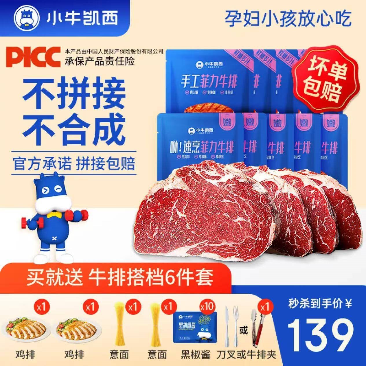 小牛凯西 整切牛排组合装10片