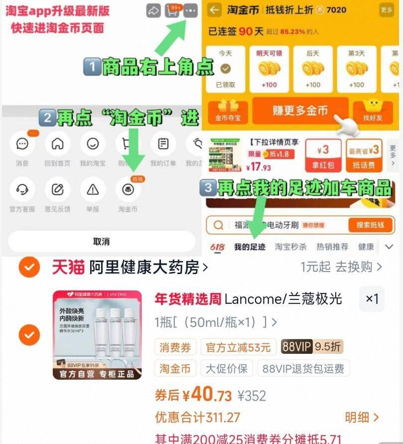 1、右上角“淘金币”加1件