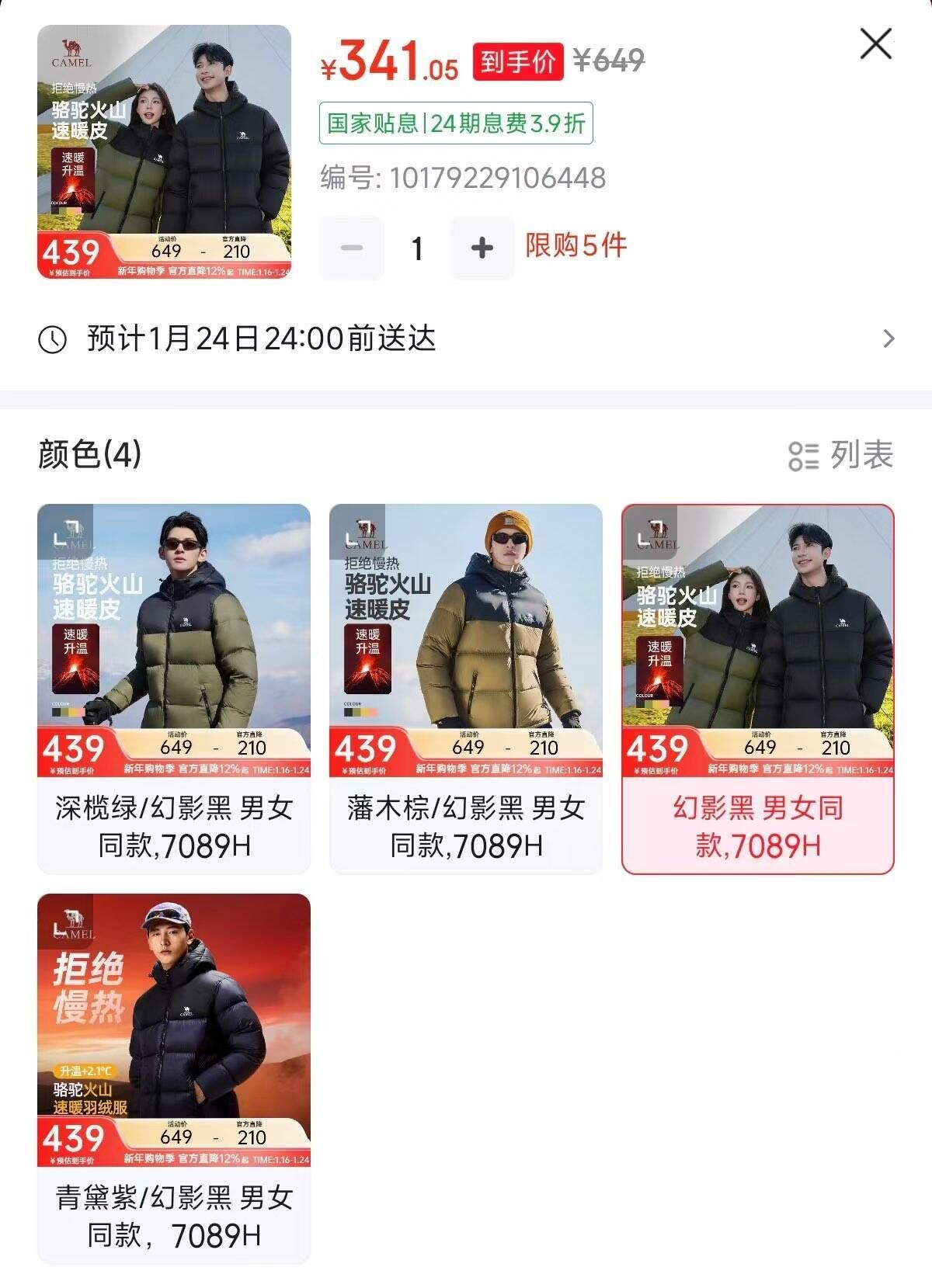 骆驼火山1.0 有限时9.5折341元