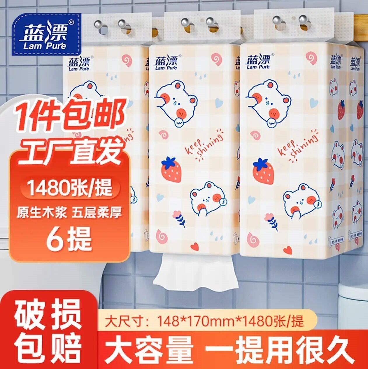 蓝漂 挂式抽纸巾1480张*6提 24.9亓,5层加厚 好用方便