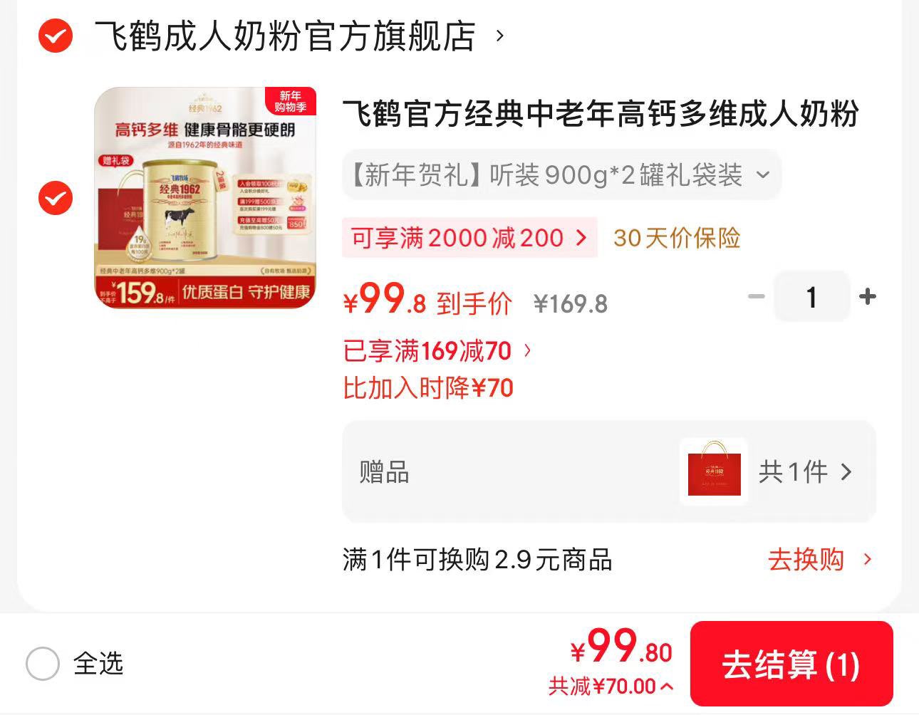 飞鹤经典中老年高钙奶粉 900g*2罐