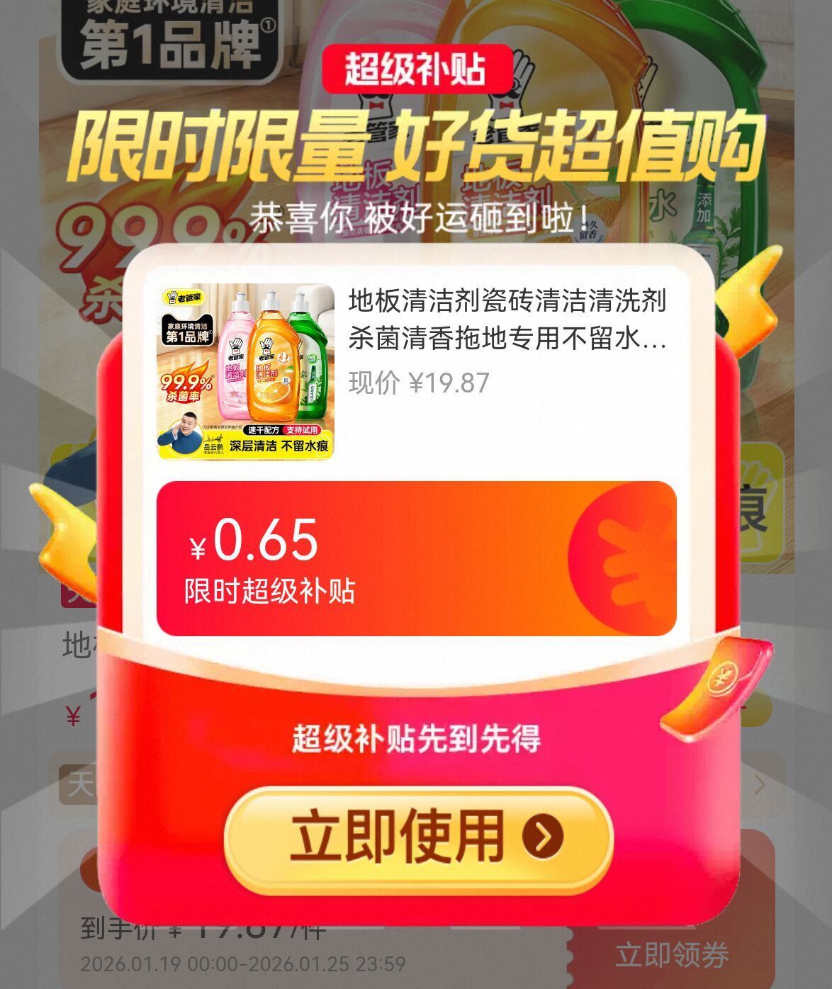 叠礼金 金币,16亓元 老管家 地板.清洁剂 500ml*2瓶 家清必备哇 好单发报员 2026年01月20日 15:10 0 举报 叠礼金 金币,16亓元【老管家】地板.清洁剂500ml*2瓶 家清必备哇清洁 保养 上光 有效除菌-https://m.tb.cn/h.7NnLvwj 复制文案
