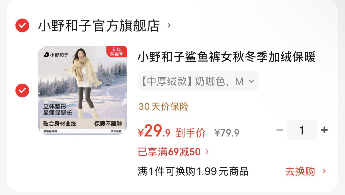 小野和子中厚绒鲨鱼裤 29.9元 领 拍