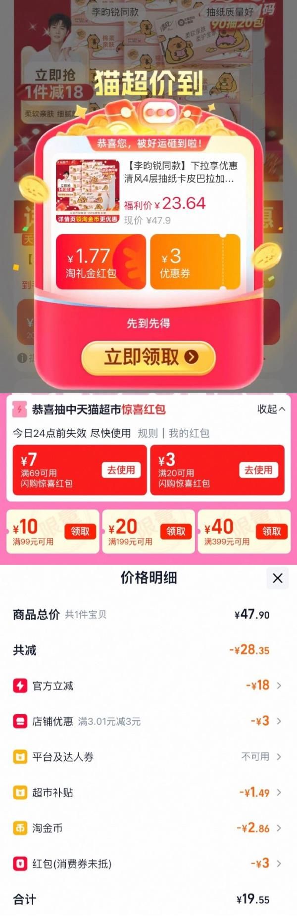 清风抽纸卡皮巴拉加大M码4层90抽20包,领礼金
