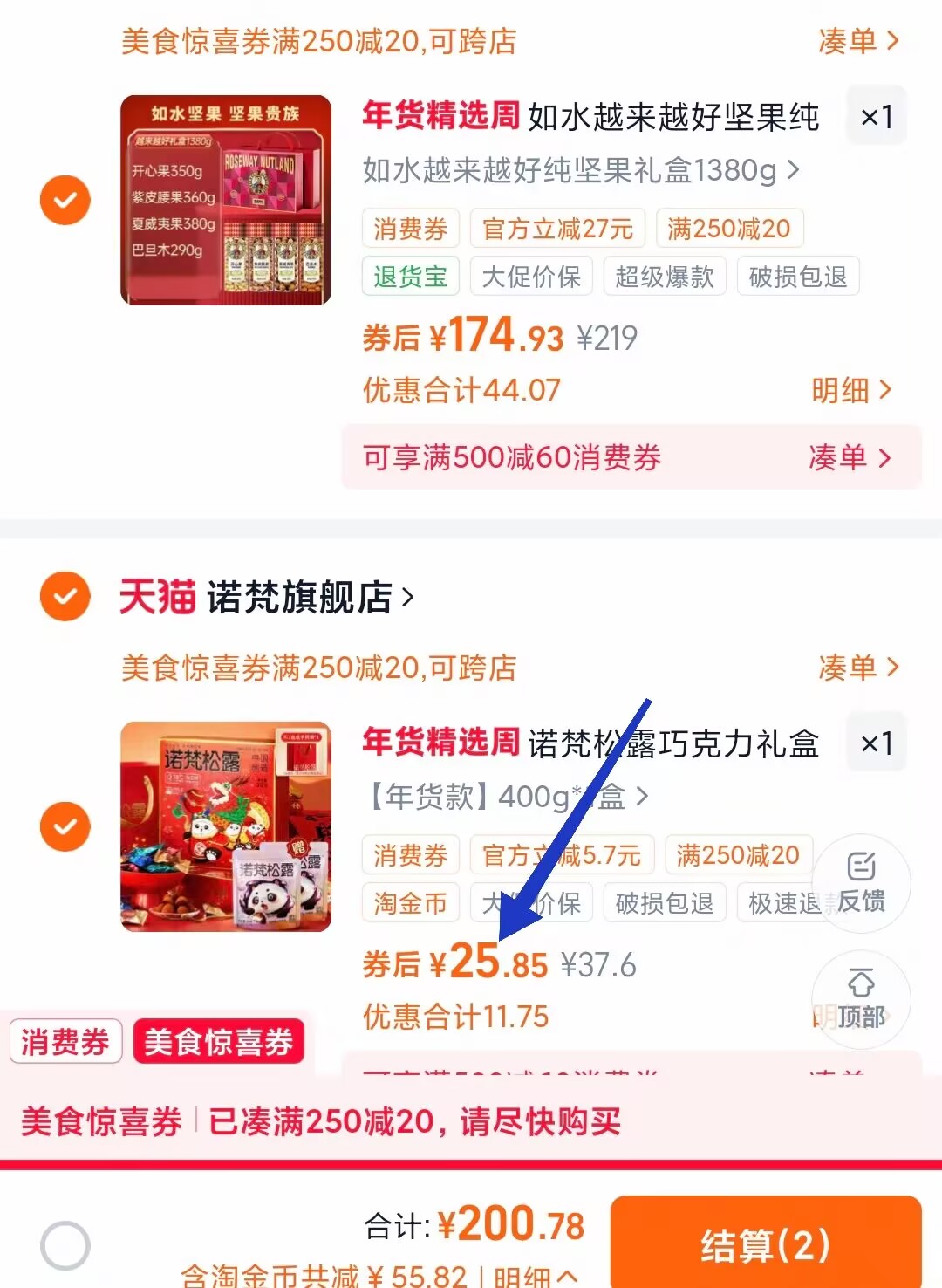③凑单加购物车一件 复制本消息打开桃宝查看 一起下单之后单独退掉凑单 好单发报员 2026年01月20日 17:55 0 举报 ③凑单加购物车一件https://m.tb.cn/h.7N31Kn0复制本消息打开桃宝查看一起下单之后单独退掉凑单诺梵黑松露巧克力500g 25元 复制文案