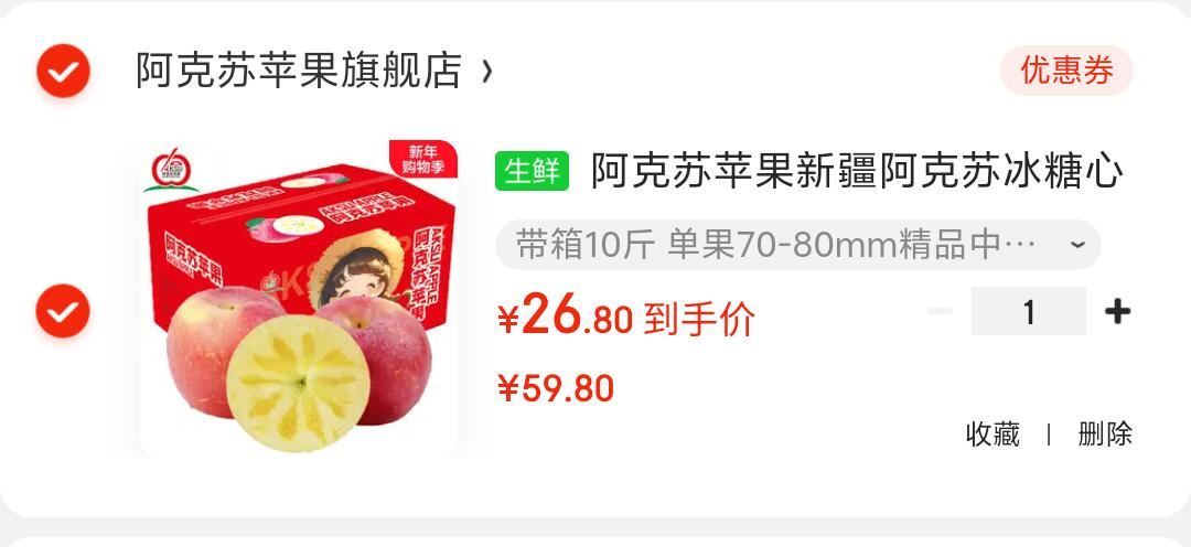 阿克苏新疆冰糖心苹果带箱10斤
