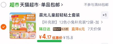 88vip4亓拍倒数第3选项 赠4包白色 全套工具 晨光 超轻黏土12色*2袋 好单发报员 2026年01月20日 19:33 0 举报 88vip4亓拍倒数第3选项赠4包白色 全套工具【晨光】超轻黏土12色*2袋https://m.tb.cn/h.7ncLT1p 复制文案