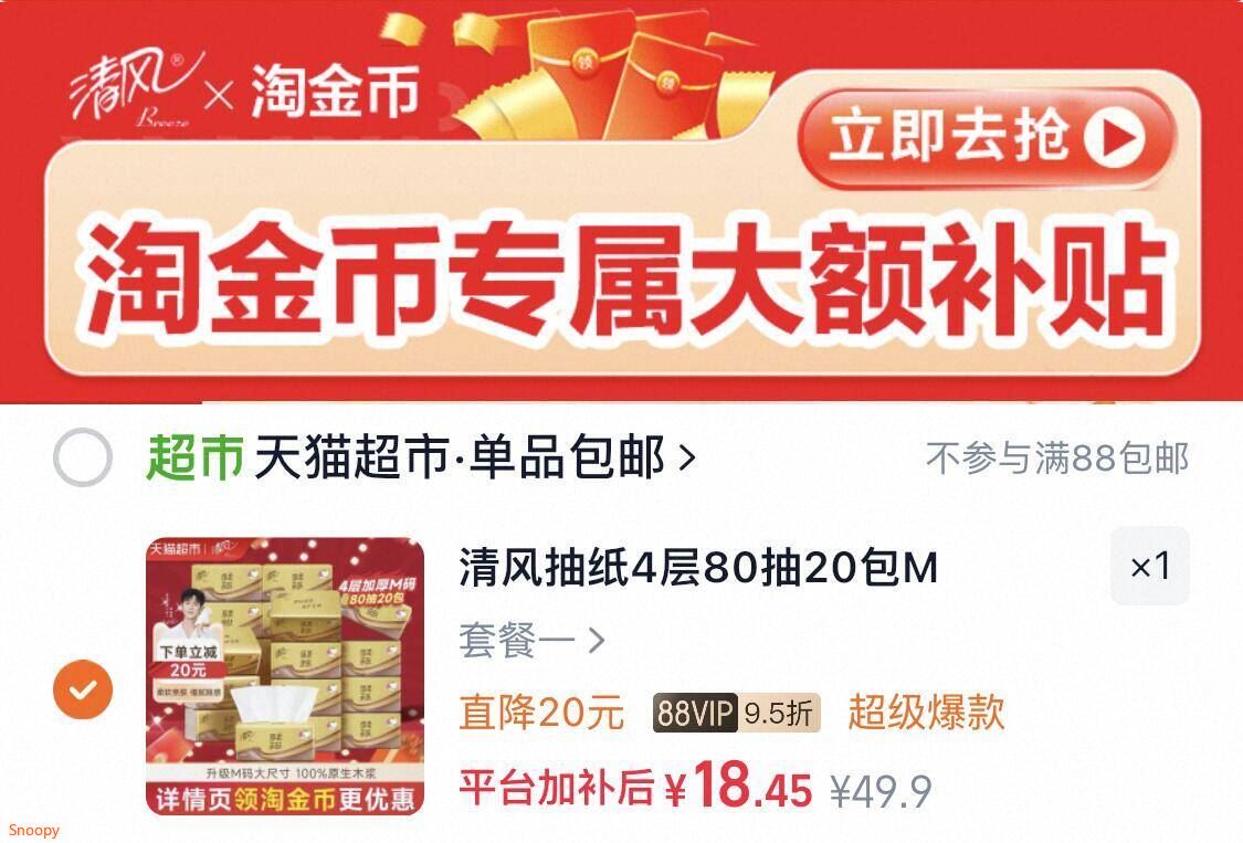 下拉拍18亓折0.9亓/包 清风抽纸金装M码20包好单发报员2026年01月20日 20:350举报 下拉拍18亓折0.9亓/包清风抽纸金装M码20包https://m.tb.cn/h.7M1yqsw复制文案