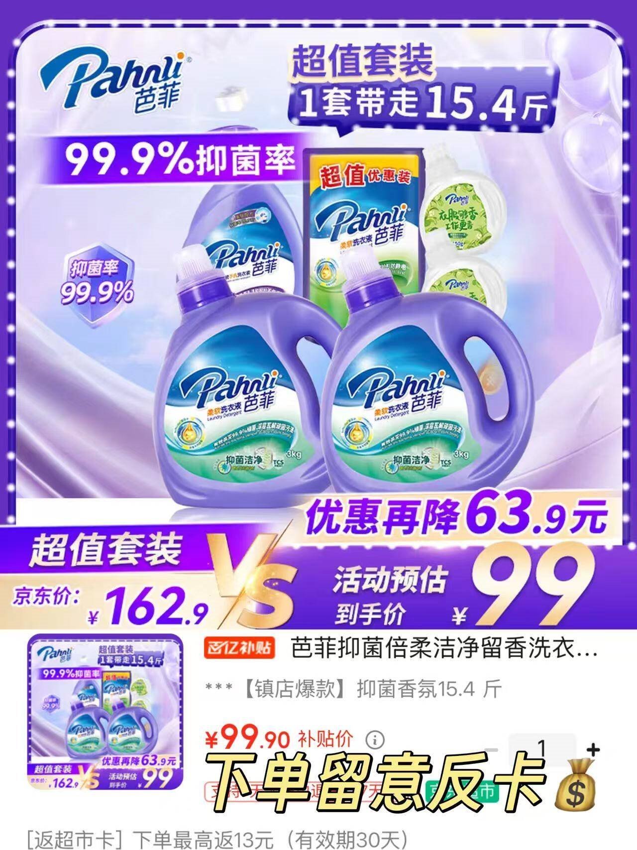 芭菲洗衣液发車 芭菲 洁净留香洗衣液15.4斤装 99亓自营包邮,plus94.9亓 好单发报员 2026年01月20日 23:42 0 举报 ——芭菲洗衣液发車——芭菲 洁净留香洗衣液15.4斤装https://u.jd.com/E1XcUmg99亓自营包邮,plus94.9亓*反13亓超.市卡 99.9%抑菌率 复制文案