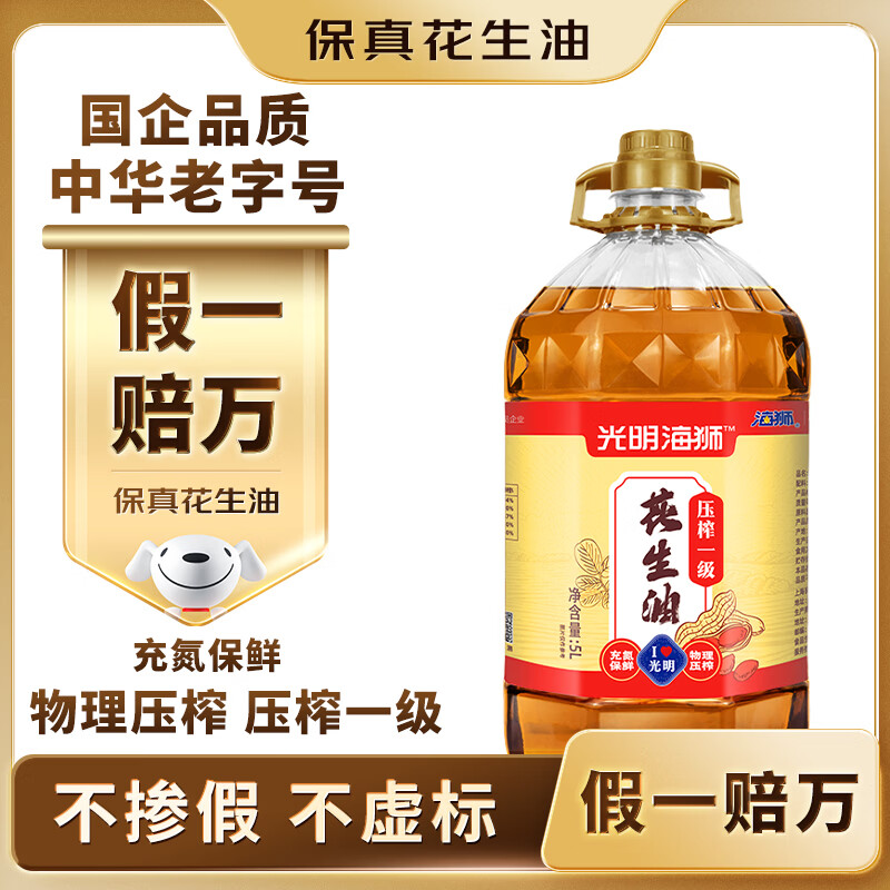 自营海狮 山东压榨一级花生油 5L