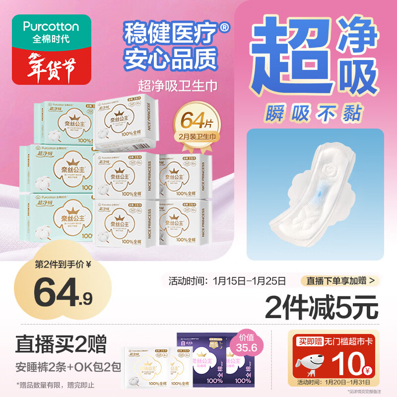 超净吸卫生巾2月装64片