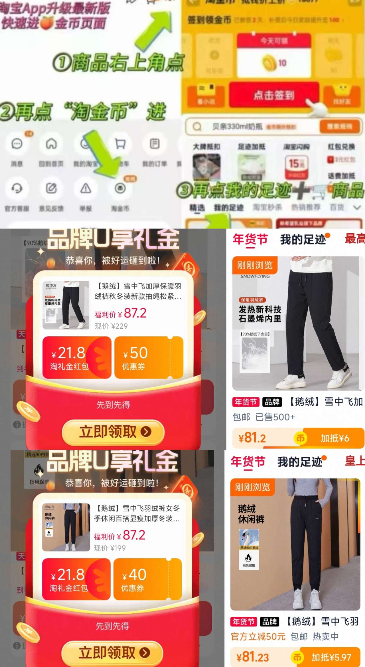 速度 雪中飞鹅绒裤 bug价了 叠双倍礼金 200-25消费券 -好单发报员2026年01月21日 15:460举报 速度 雪中飞鹅绒裤 bug价了叠双倍礼金 200-25消费券-1.领双倍礼金 点右上角淘金币可抵6元 加车1件雪中飞 90鹅绒男子休闲裤https://m.tb.cn/h.7nGn7ag复制文案