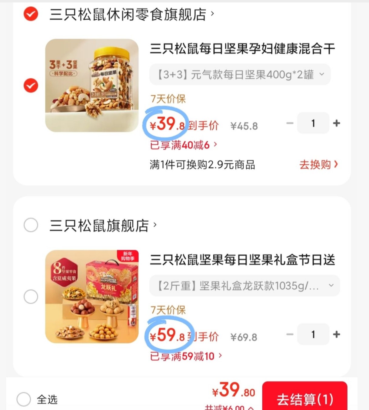 三只松鼠 龙跃礼坚果礼盒 1035g*2箱【59.8】
