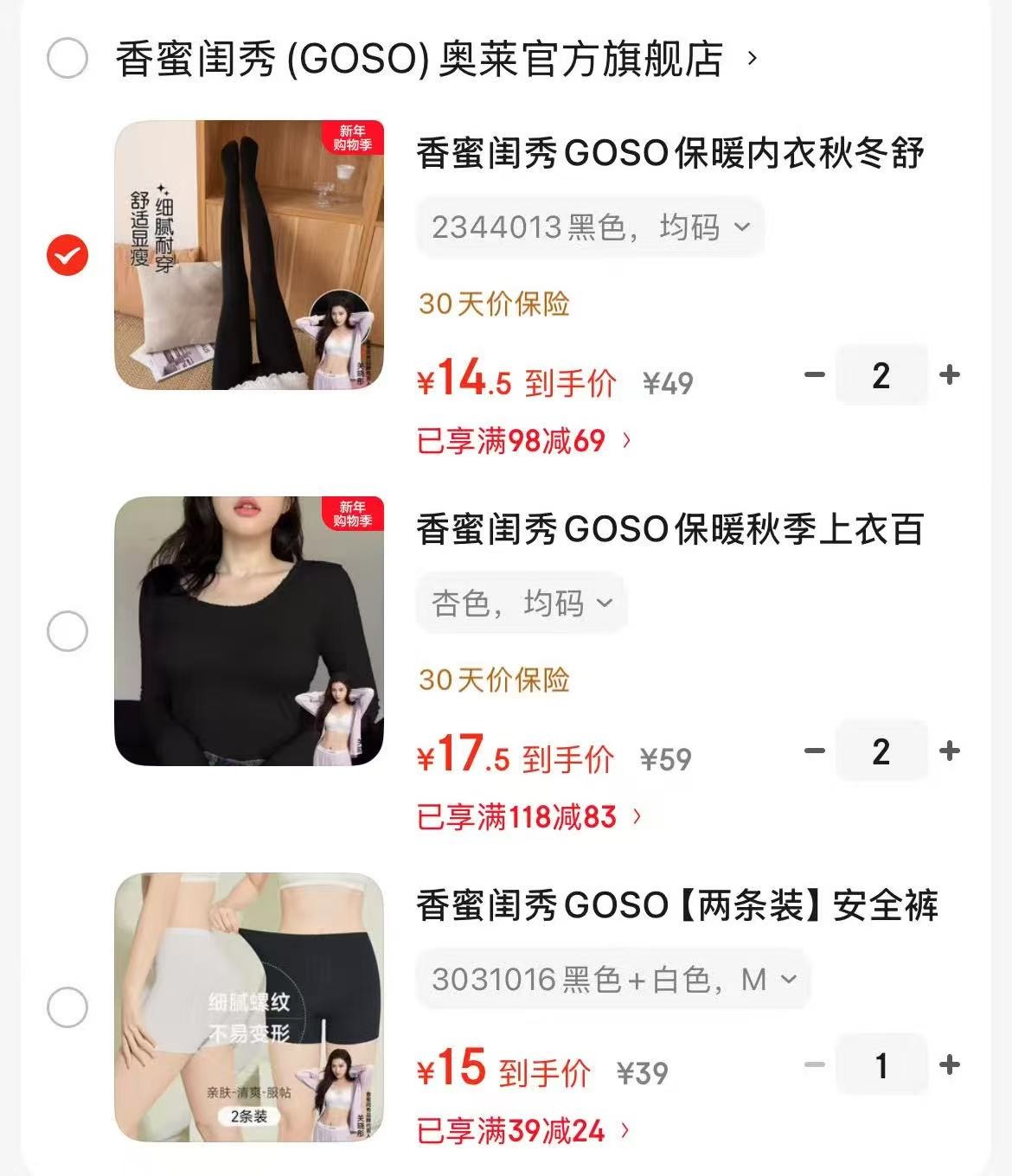 香蜜闺秀GOSO安全裤女防走光打底裤 2条装【15】