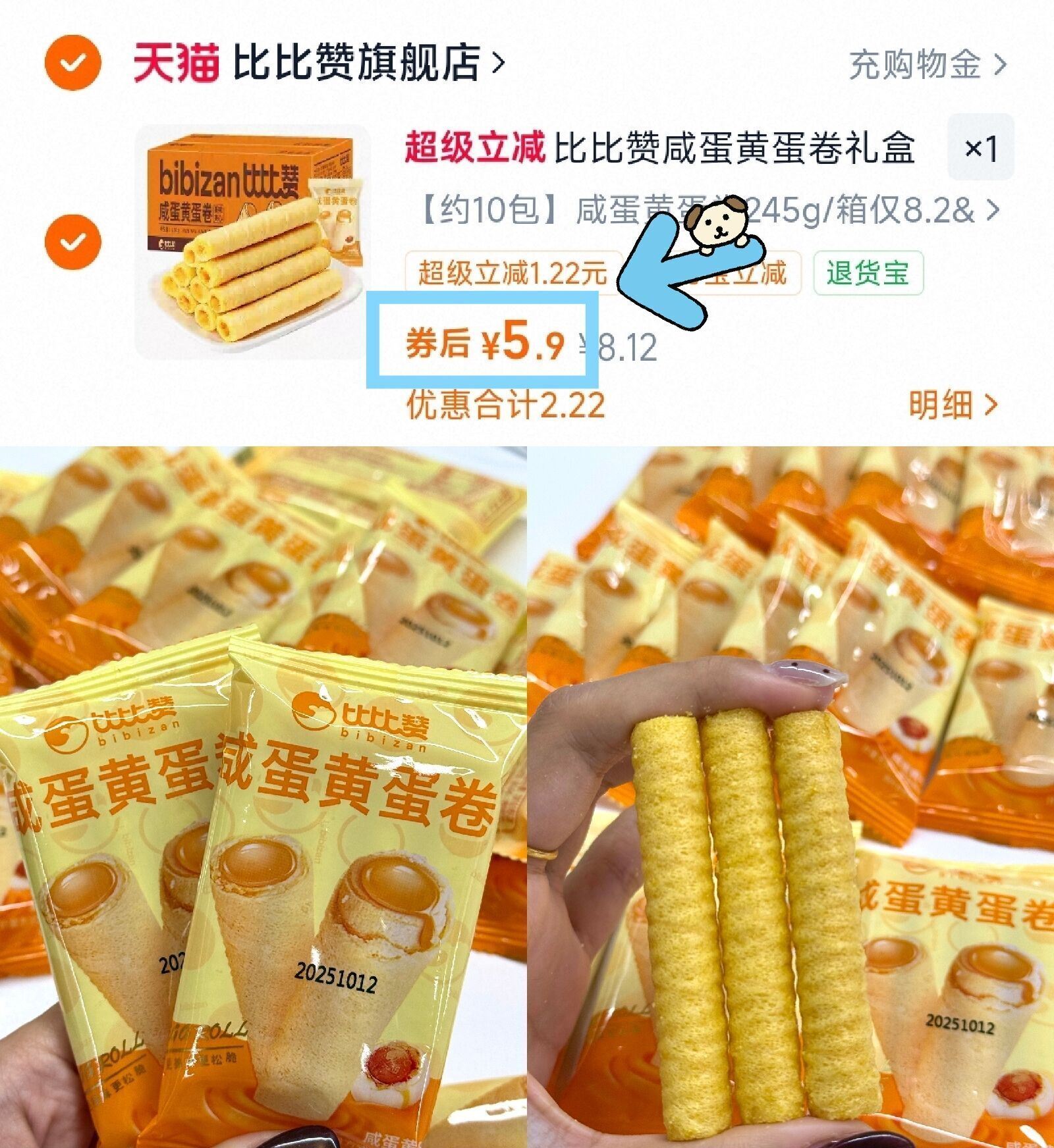 比比赞.咸蛋黄鸡蛋卷245g/箱