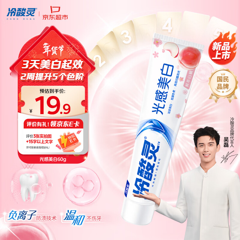 冷酸灵光感美白牙膏白桃味60g 拍6件59.7亓 反42超市卡 到手17.7亓 折2.9亓/支 好单发报员 2026年01月21日 19:15 0 举报 冷酸灵光感美白牙膏白桃味60g拍6件59.7亓 反42超市卡到手17.7亓 折2.9亓/支https://u.jd.com/EaUFiko 复制文案