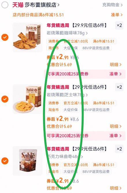 2.9亓/盒神圿叠2.4淘金币 下拉详情去金币会场拍6件=17.4亓 莎布蕾 黄油曲奇饼干6盒好单发报员2026年01月21日 20:530举报 2.9亓/盒神圿叠2.4淘金币下拉详情去金币会场拍6件=17.4亓【莎布蕾】黄油曲奇饼干6盒https://m.tb.cn/h.7Mabsfv复制文案