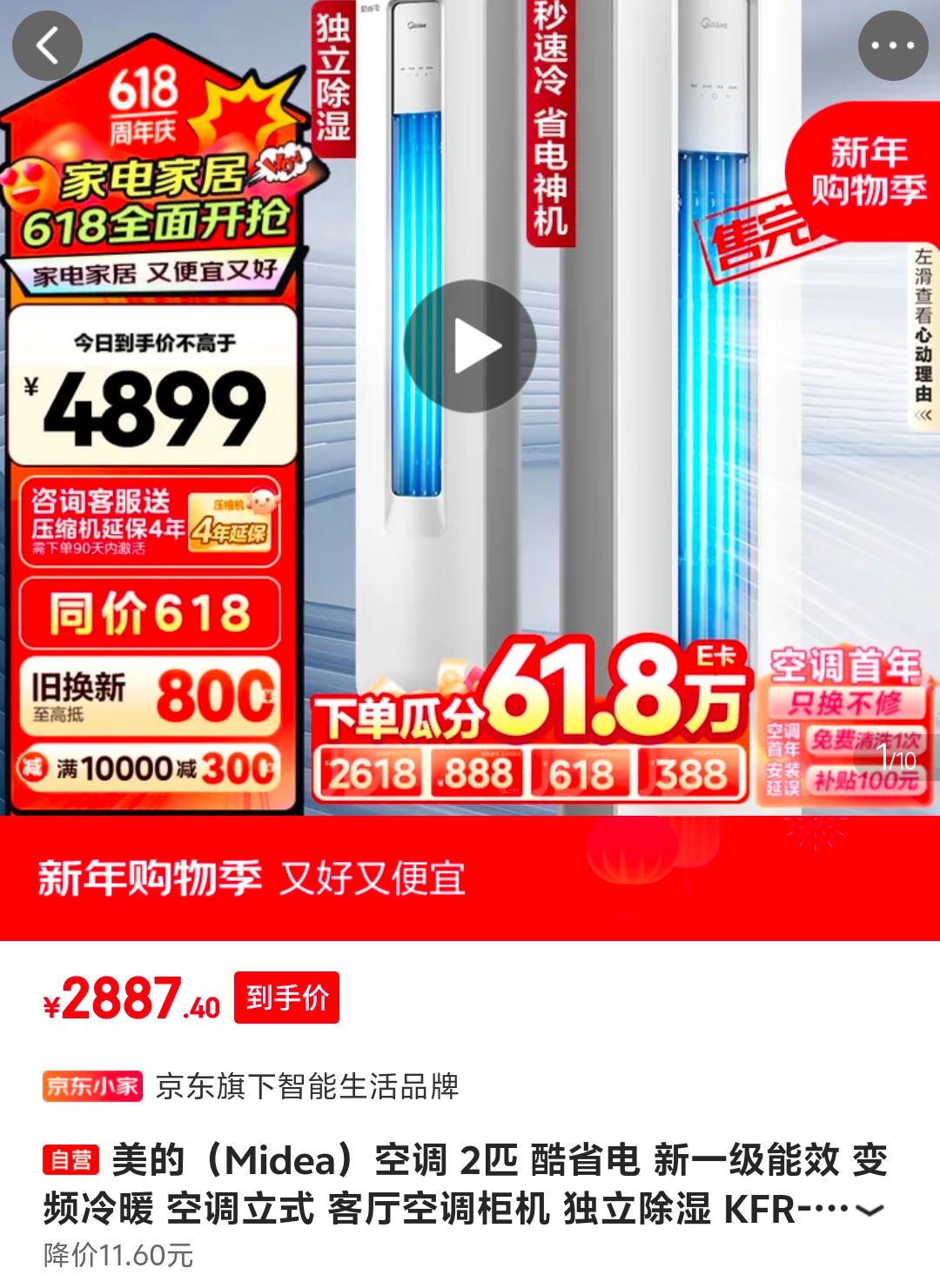 2888 自辩 美的 Midea 空调 2匹 酷省电 新一级能效 变频冷暖 空调立式 客厅空调柜机 独立除湿 KFR-51LW/N8KS1-1 好单发报员 2026年01月21日 21:29 0 举报 2888 自辩美的 (Midea)空调 2匹 酷省电 新一级能效 变频冷暖 空调立式 客厅空调柜机 独立除湿 KFR-51LW/N8KS1-1 https://u.jd.com/EGkYvPY 复制文案