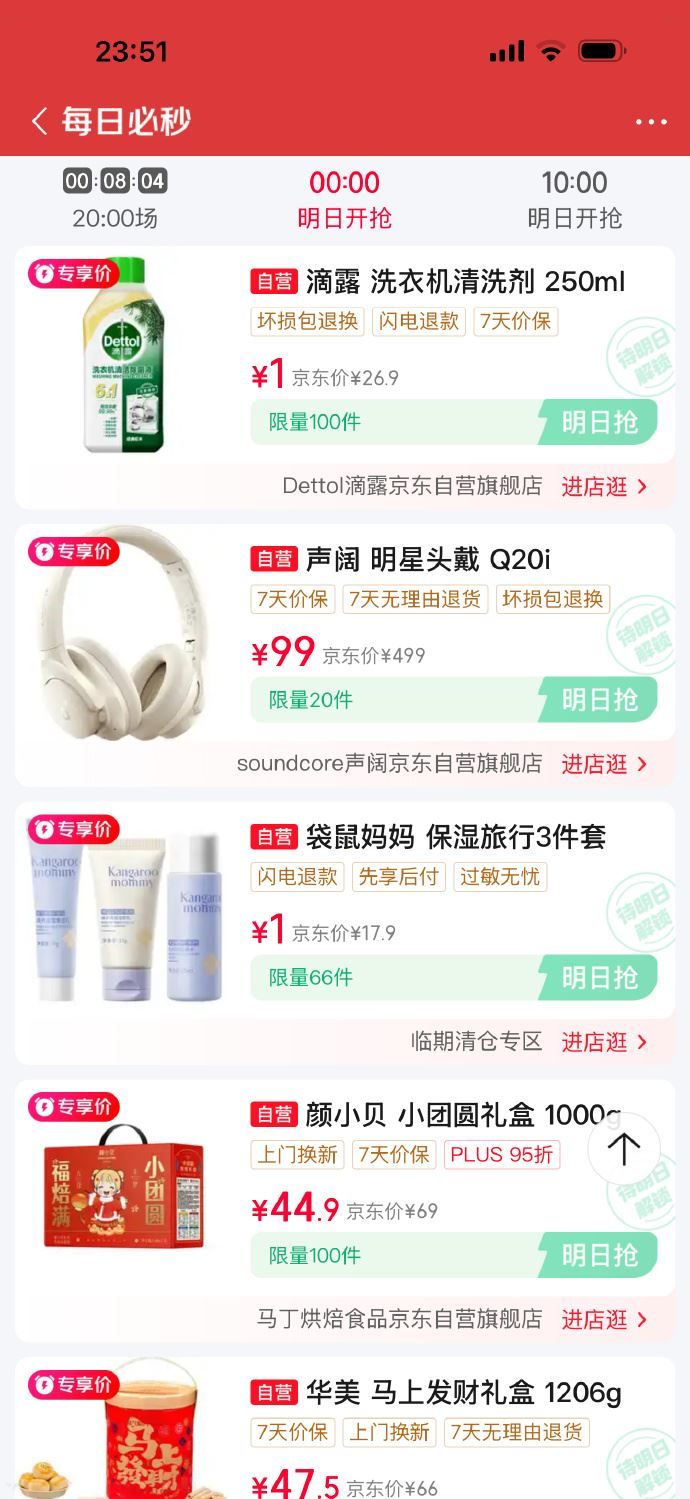 ①手机设置里修改时间至次日凌晨,加购时便不会有“明日商品xxx”的那段提示