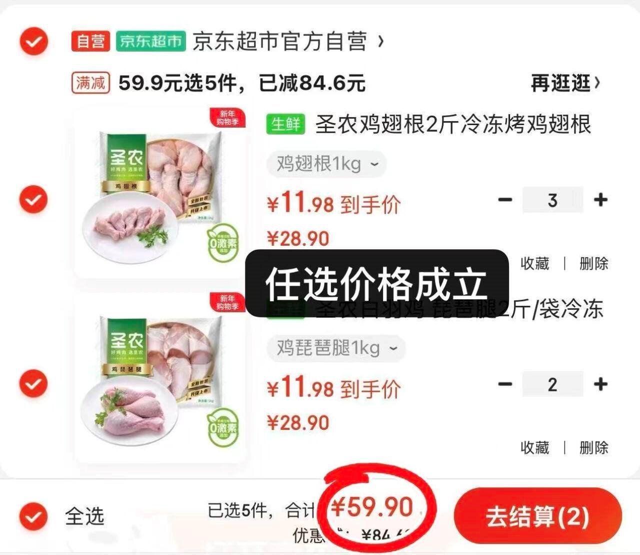 块圣农炒底忦 自营 圣农 琵琶腿/鸡翅根2斤 任选5件59.9亓,才5.9亓/斤好单发报员2026年01月22日 09:240举报 ——块圣农炒底忦——【自营】圣农 琵琶腿/鸡翅根2斤https://u.jd.com/EaxcJNDhttps://u.jd.com/EDxRBq1任选5件59.9亓,才5.9亓/斤*上市大牌 量到变忦 刚.需抓.紧复制文案