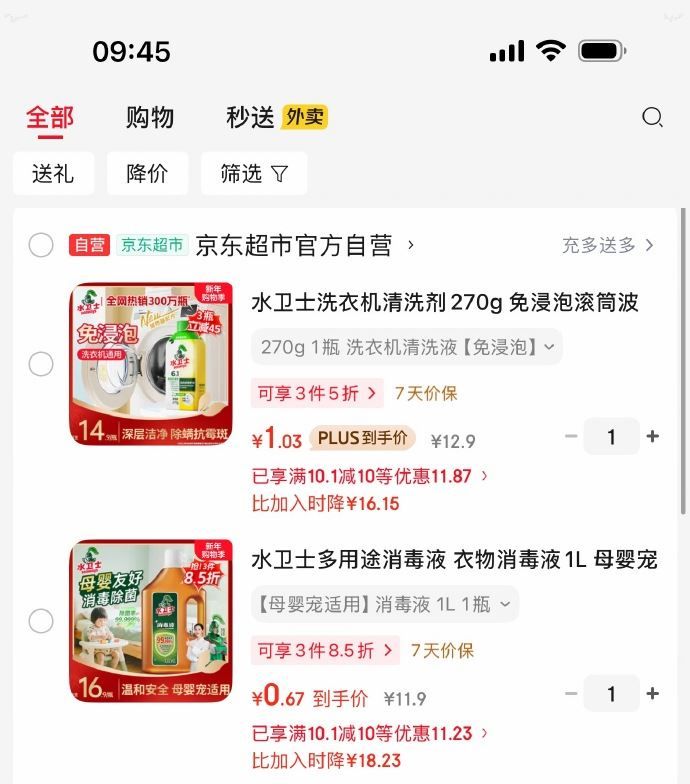 水卫士衣物消毒液1L,1首单【0.67】