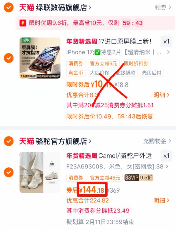 3、凑单商品加购1件 一起付款然后退掉凑单