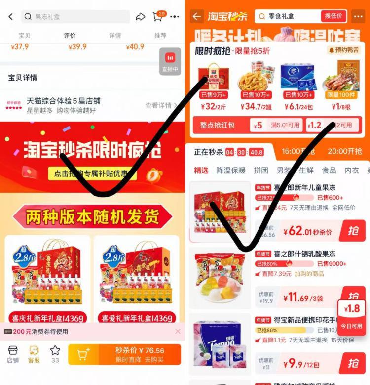 喜之郎年货礼盒1436g*2元62 - 1.如图下划详情进入淘宝秒杀好单发报员2026年01月22日 13:460举报 喜之郎年货礼盒1436g*2元62-1.如图下划详情进入淘宝秒杀2.找到商品后,直接拍下即可https://m.tb.cn/h.7oPviEM复制文案
