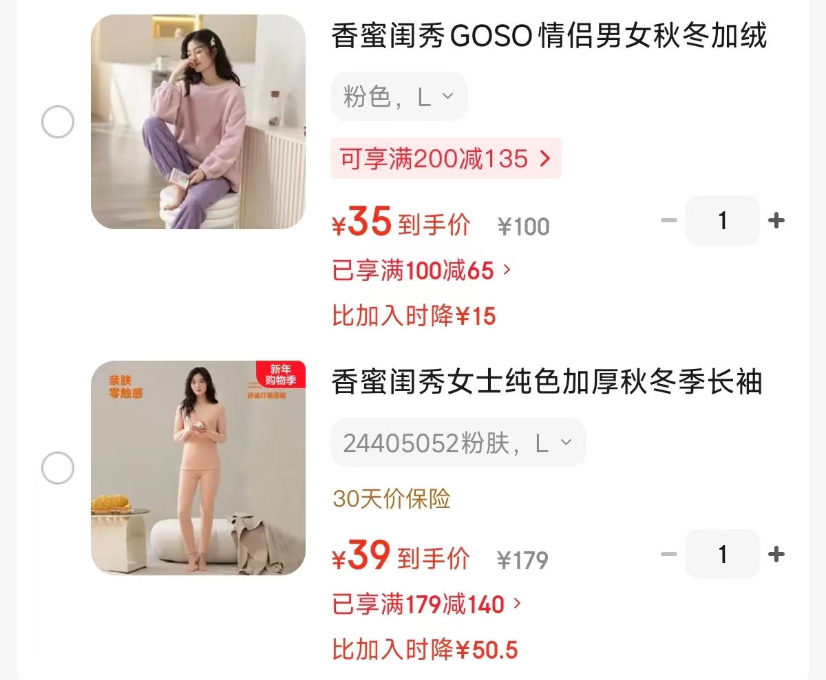 ②保暖内衣套装39元