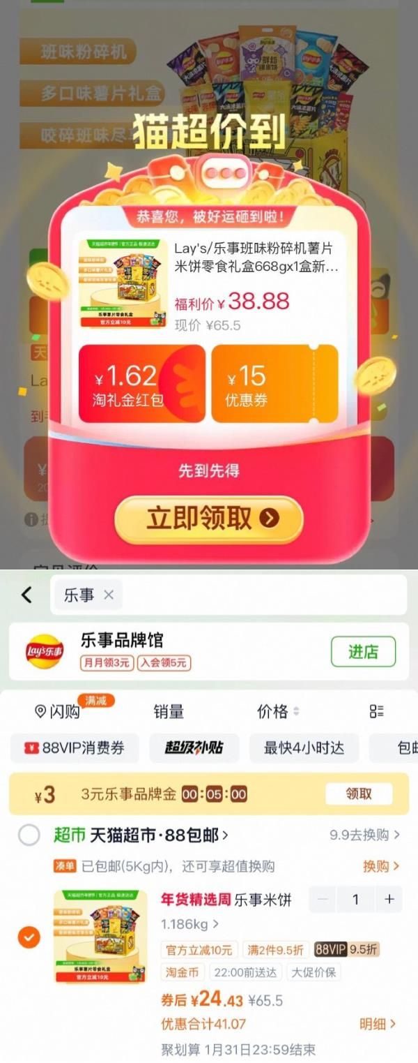 乐事班味粉碎机薯片米饼零食礼盒668g,领礼金
