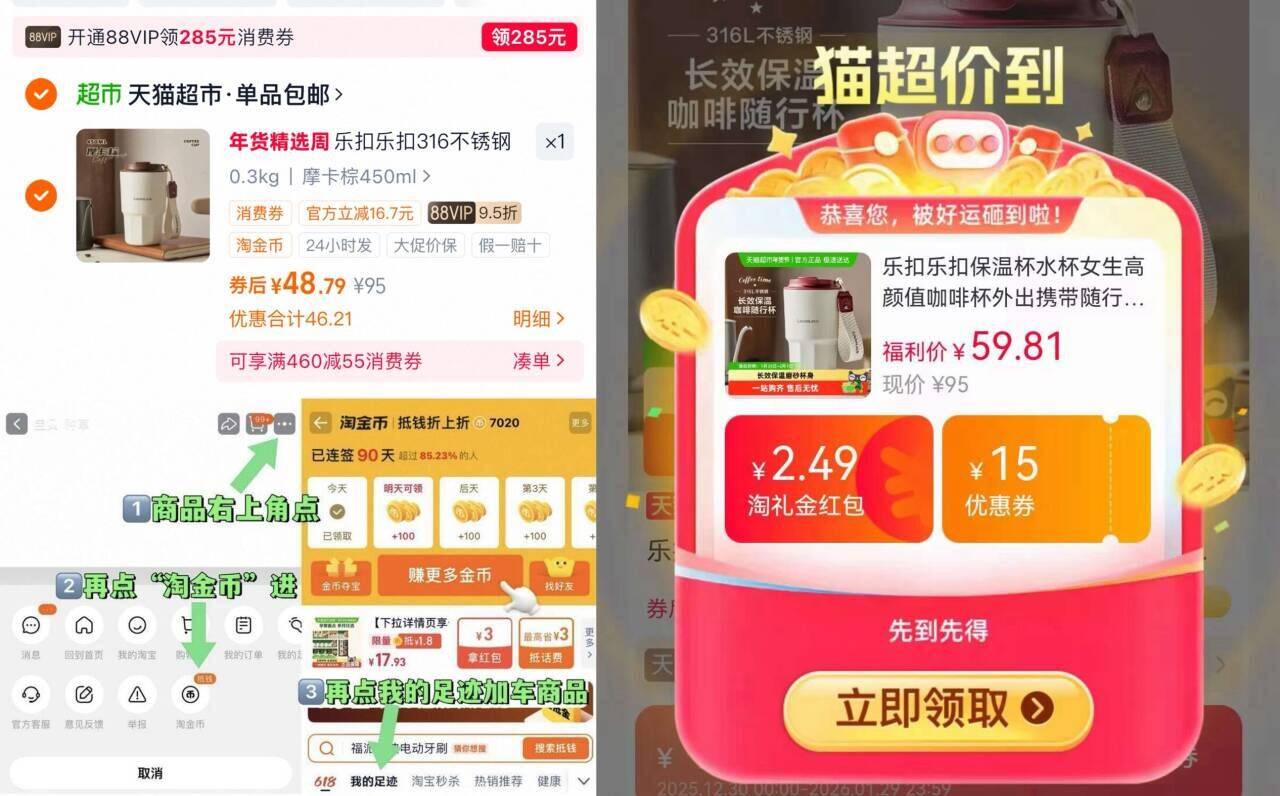 48.7元!叠礼金 淘金币 乐扣乐扣 保温杯450ml vip叠加消费券 到手价更优惠 好单发报员 2026年01月22日 15:00 0 举报 48.7元!叠礼金 淘金币【乐扣乐扣】保温杯450mlvip叠加消费券 到手价更优惠巨保温!保热保冷都没问题~ 质量没得说啊 可以用好几年呢-https://m.tb.cn/h.7MfFKZI 复制文案