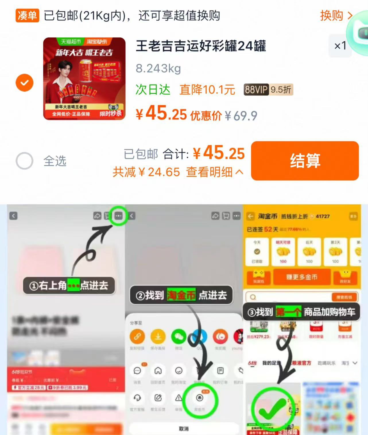 点右上角···再点击桃金币 找到商品 叠限量礼金 拍1件 vip拍下45.2亓 折1.88亓/罐 好单发报员 2026年01月22日 16:16 0 举报 点右上角···再点击桃金币找到商品 叠限量礼金 拍1件vip拍下45.2亓 折1.88亓/罐王老吉好彩罐凉茶饮料310ml*24https://m.tb.cn/h.7Mp8yzS 复制文案