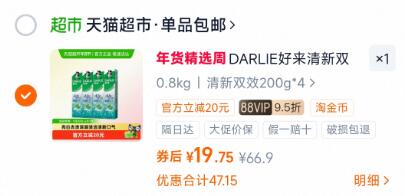 DARLIE好来原黑人牙膏清新双效200g*4支套装
