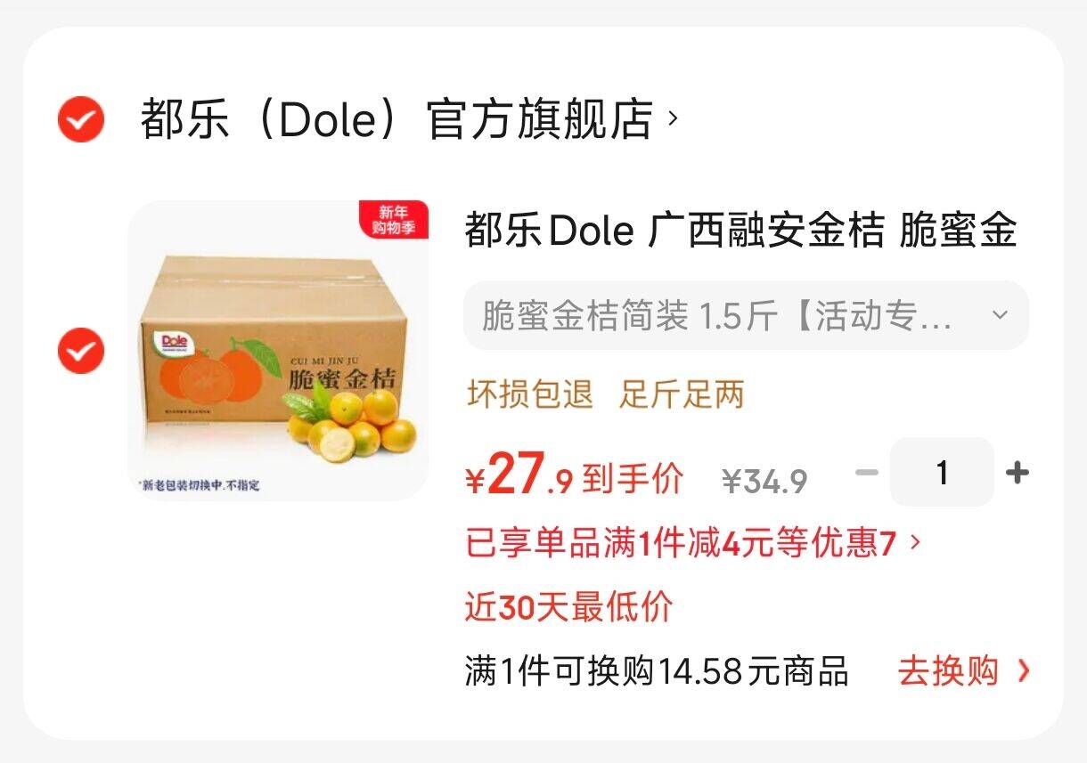 都乐Dole 广西融安金桔 简装1.5斤27元.9,独立小包 好单发报员 2026年01月22日 17:00 0 举报 都乐Dole 广西融安金桔简装1.5斤27元.9,独立小包https://u.jd.com/EgFiqpt 复制文案