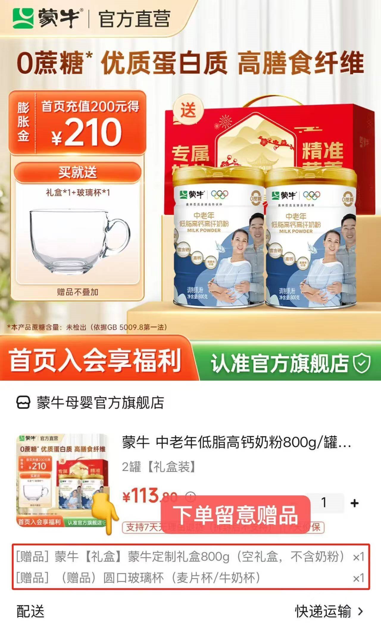 蒙牛 中老年低脂奶粉800g*2罐