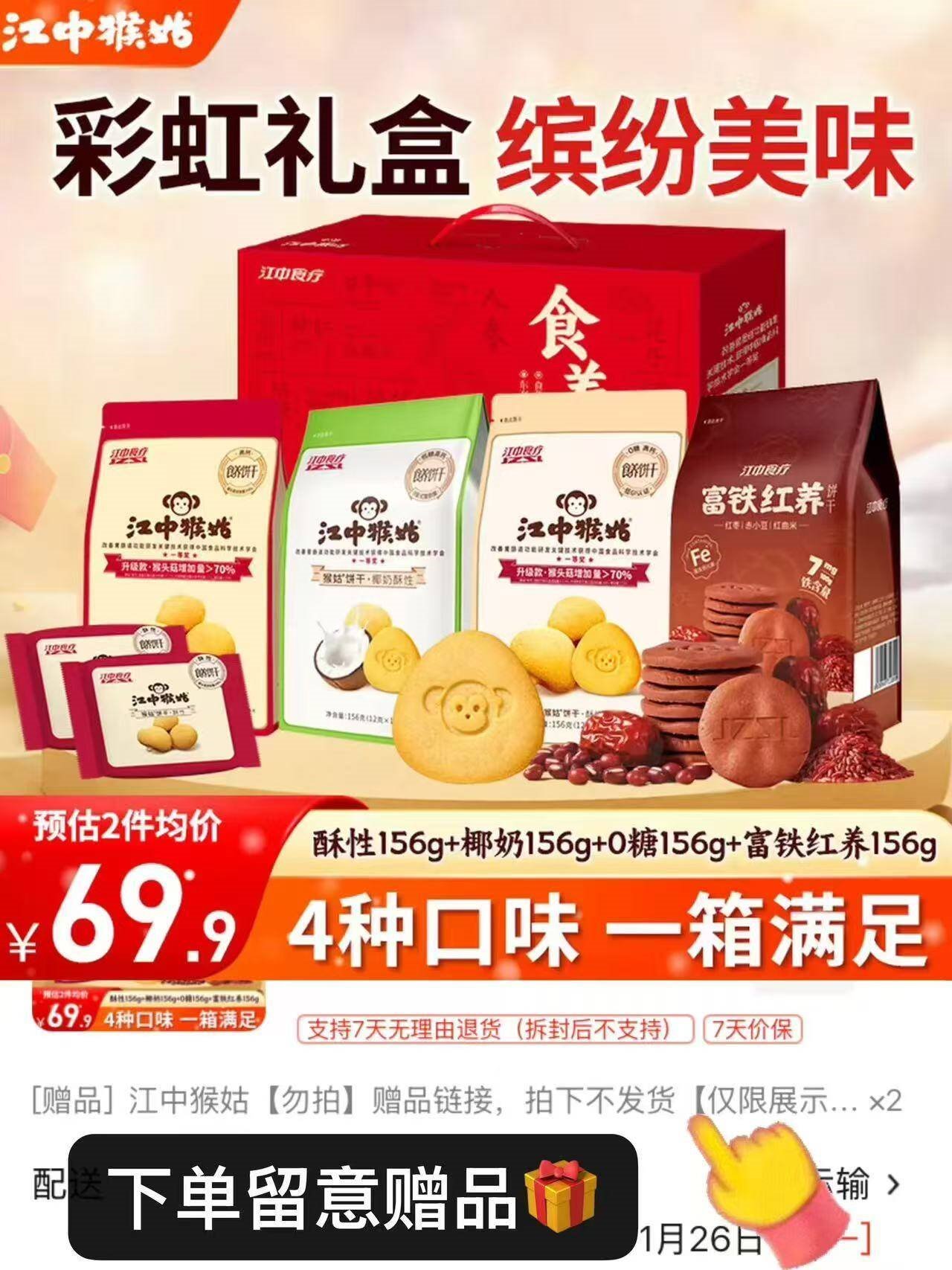 江中猴姑 彩虹菇饼干礼盒624g