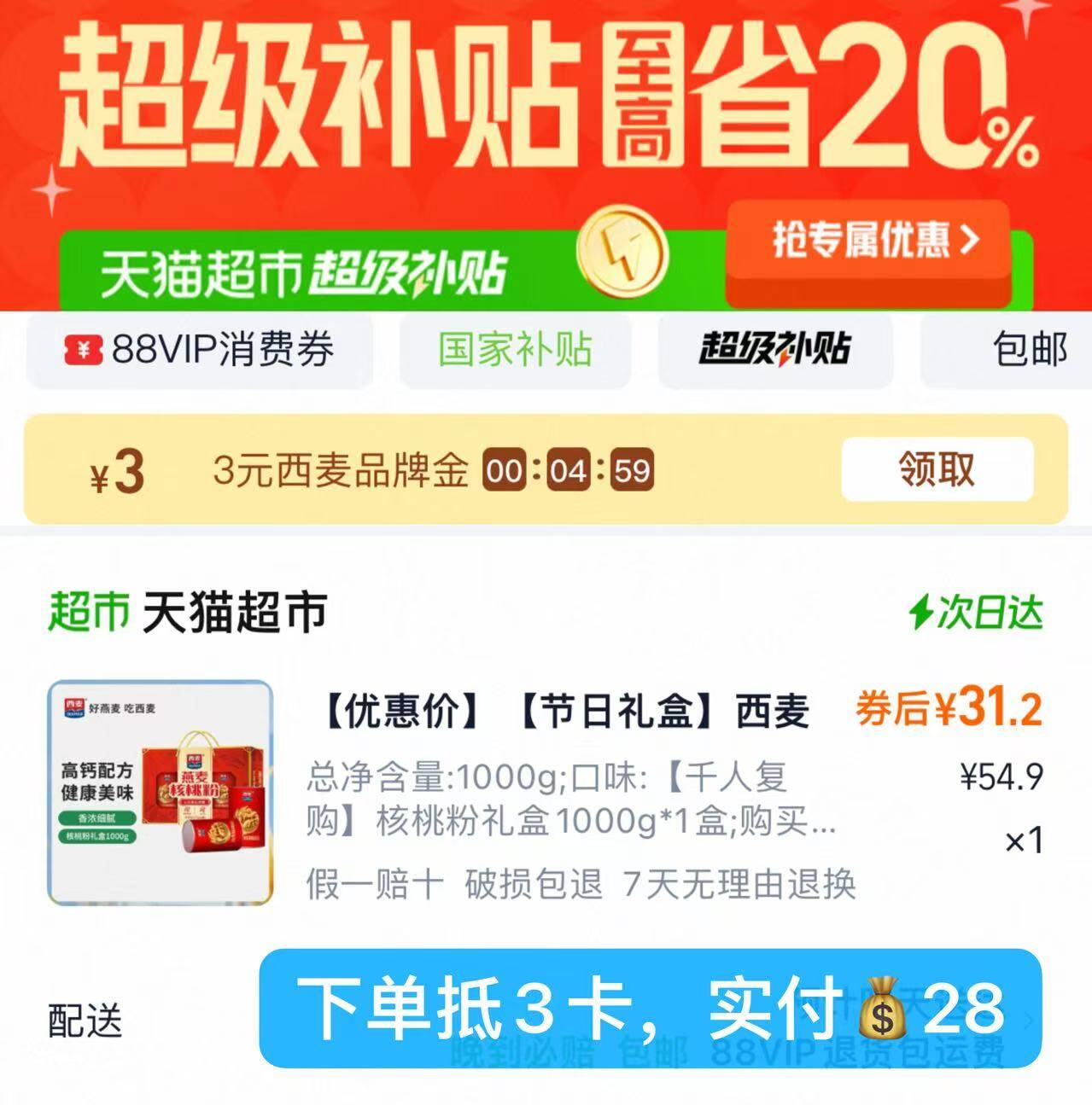 西麦燕麦片核桃粉礼盒1000g 1.下拉叠超级补贴加购1 2.猫超首页搜;西麦好单发报员2026年01月22日 19:410举报 西麦燕麦片核桃粉礼盒1000g1.下拉叠超级补贴加购12.猫超首页搜;西麦3.付窾叠3品牌金实付28https://m.tb.cn/h.7osbOug https://m.tb.cn/h.7M8DEAF复制文案