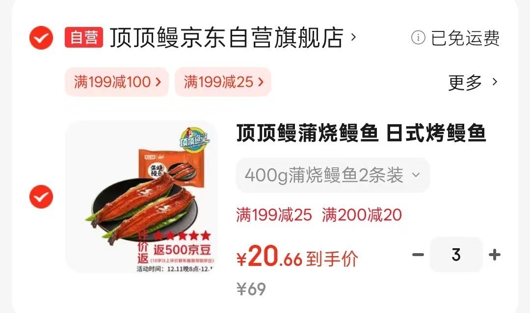 顶顶鳗蒲烧鳗鱼 日式烤鳗鱼400g/袋2条整条装,拍3件【62】