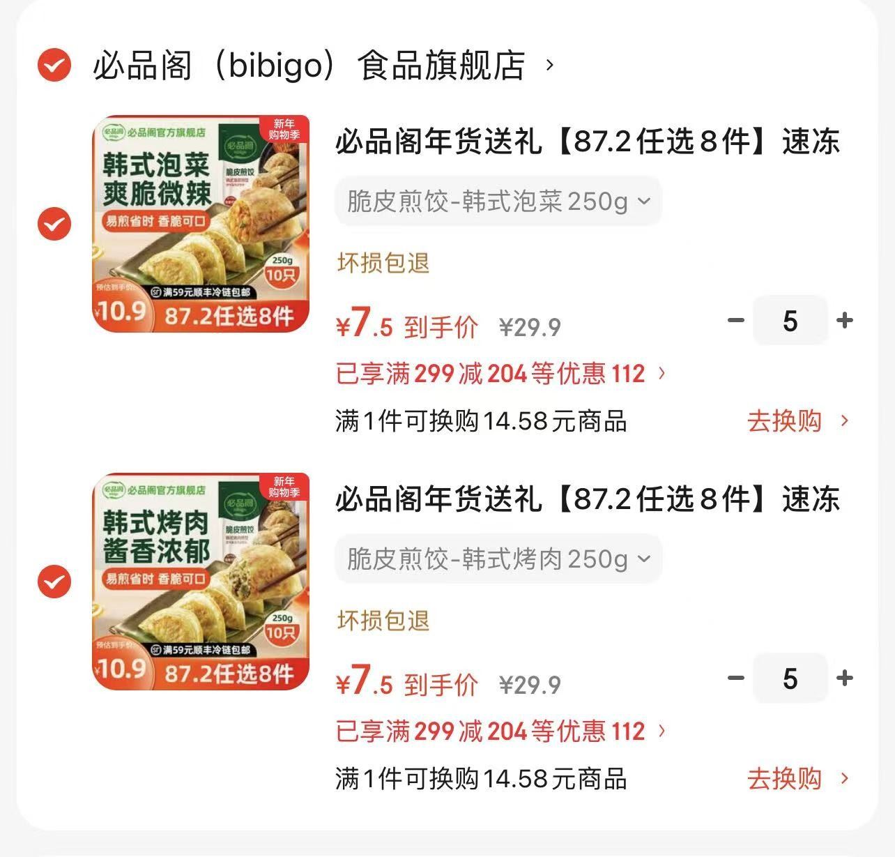 必品阁 脆皮煎饺-韩式烤肉250g,任选10件【75】