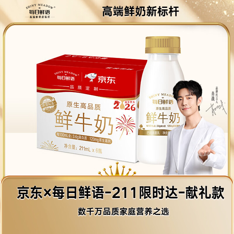 自营每日鲜语 3.6g鲜牛奶211ml*6瓶