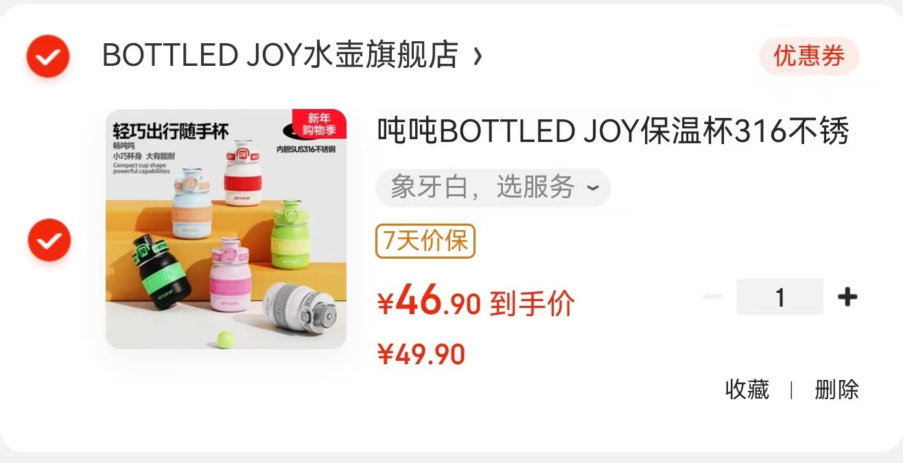 领49-3 https://coupon.m.jd.com/coupons/show.action?key=3045b8849e8d42e7b267aadb77ea7d22&roleId=2185689305&to=bottledjoy.jd.com