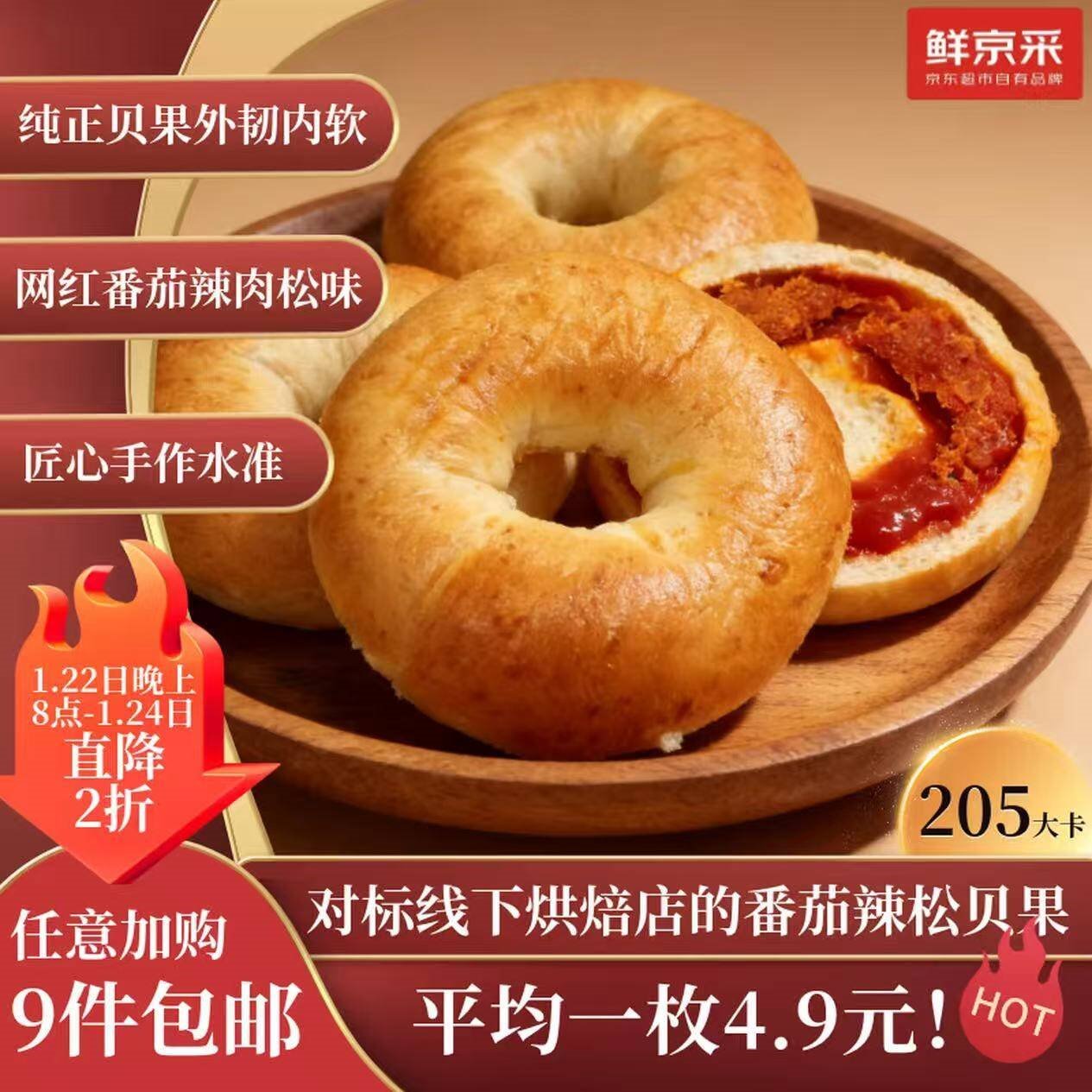 【自营】鲜京采 贝果面包75g/80g
