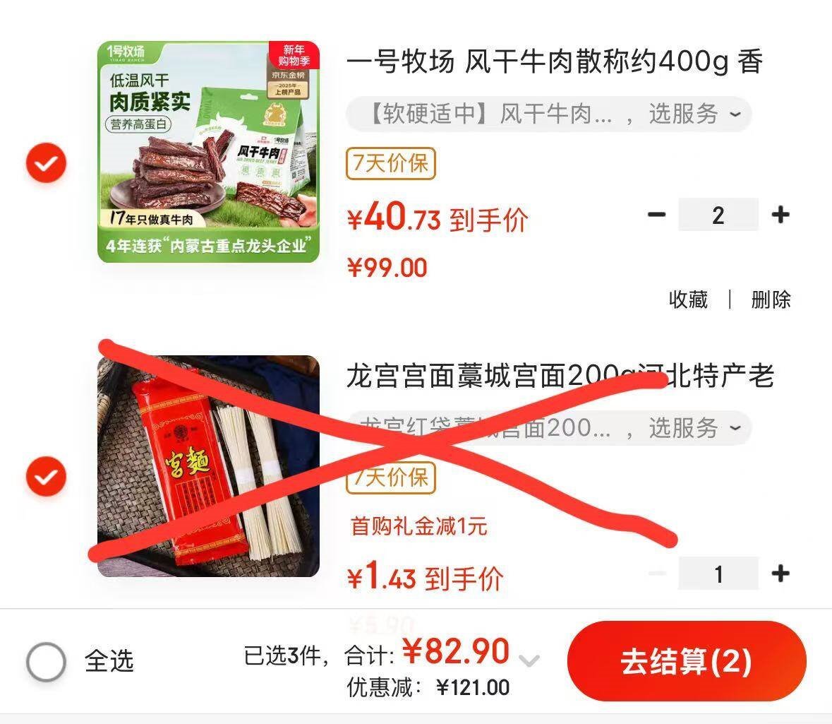 牛肉干2件81.2亓,折40.7/件