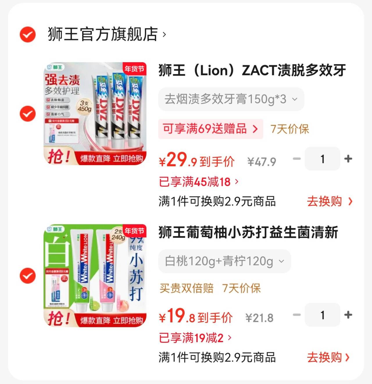 狮王渍脱多效护龈牙膏 大支150g*3,拍下29元.9 狮王葡小苏打益生菌牙膏好单发报员2026年01月23日 09:410举报 狮王渍脱多效护龈牙膏大支150g*3,拍下29元.9https://u.jd.com/EaefzGy狮王葡小苏打益生菌牙膏白桃120g 青柠120g19元.8https://u.jd.com/EDeHuz4复制文案