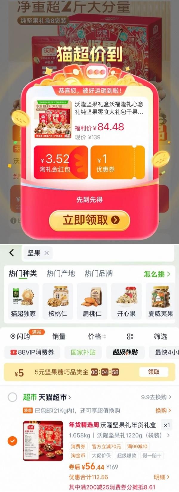 沃隆坚果礼盒1220g选项,领礼金