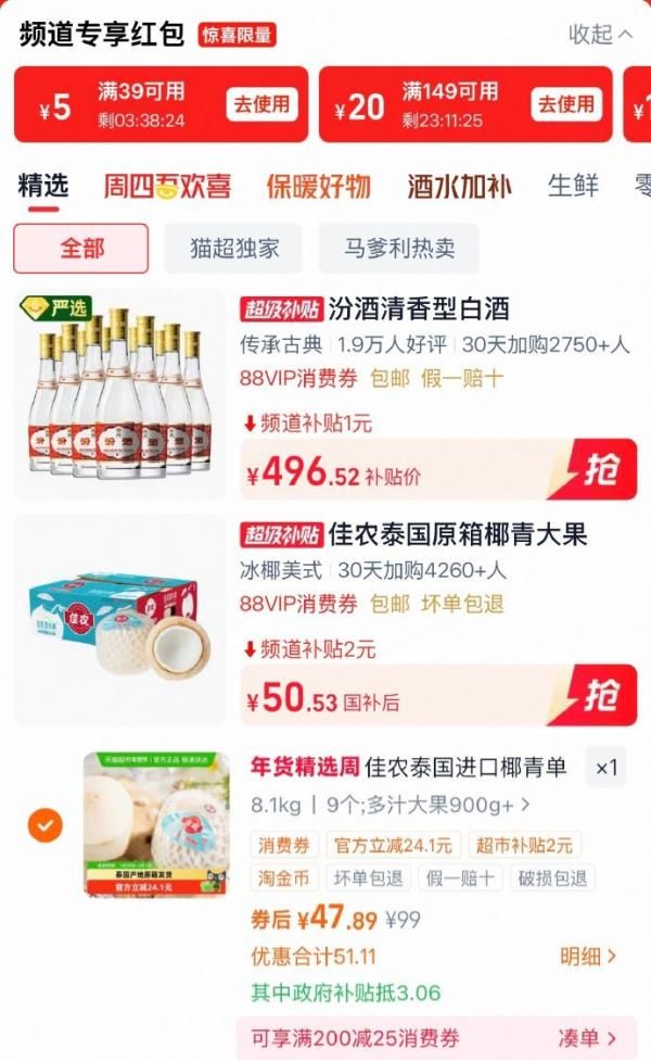 合理凑单后,用99-10和政府补贴,拍1件vip【47.9】