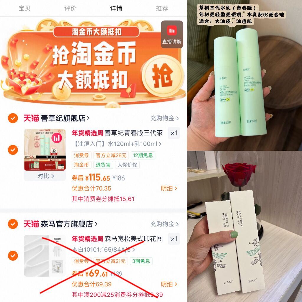 善草纪三代茶树祛痘水乳