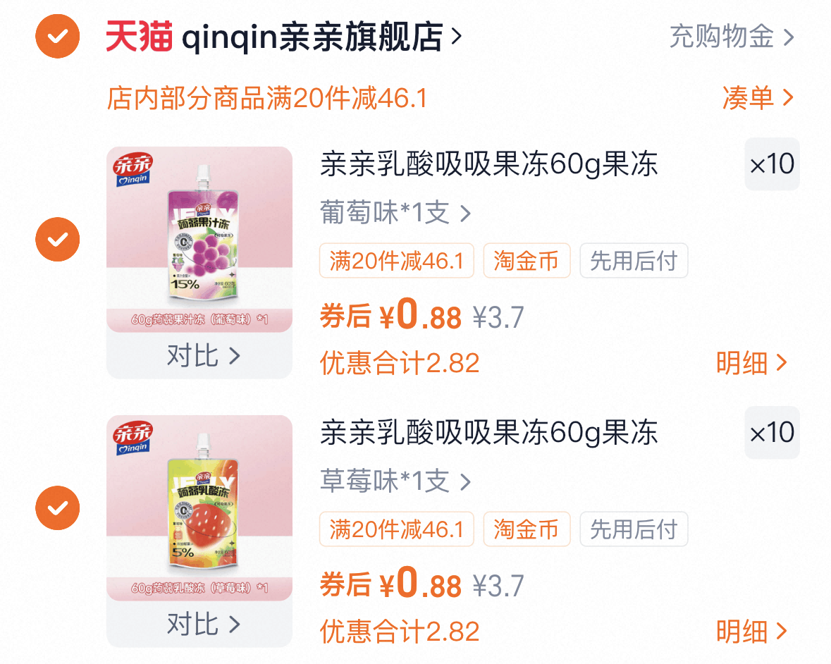 拍20件 折0.8一支 亲亲0脂吸吸果冻共20支好单发报员2026年01月23日 14:050举报 拍20件 折0.8一支亲亲0脂吸吸果冻共20支https://m.tb.cn/h.7Lh5oXj复制文案