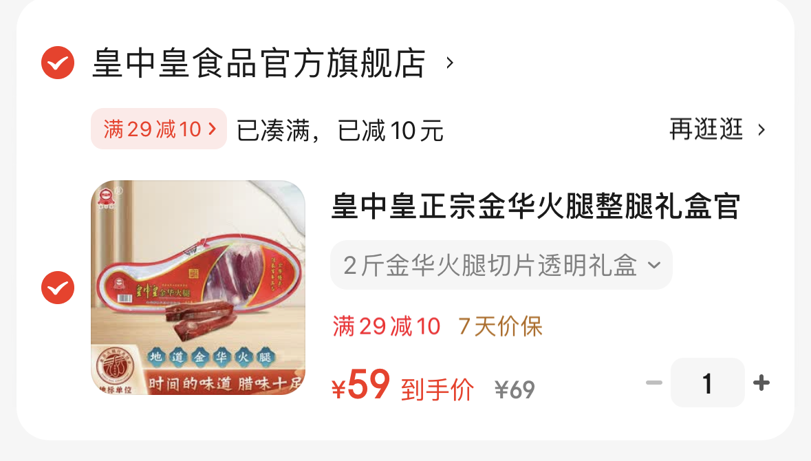 皇中皇 金华火腿切片礼盒 2斤